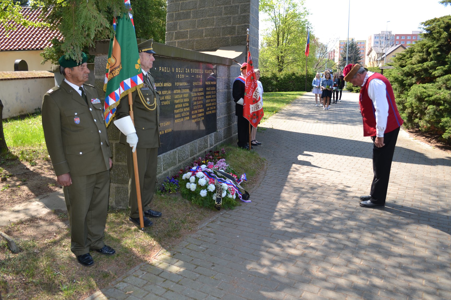 Pietní vzpomínka u pamětní desky obětem II. světové války na Čestném pohřebišti v Hostivaři, ulice K jezeru