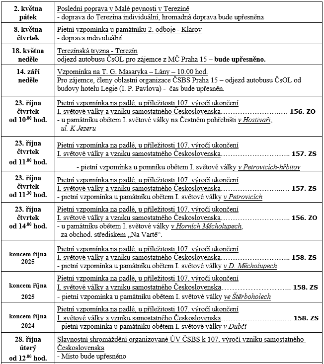 28. října 2024 - 12.00 Slavnostní shromáždění organizované ÚV ČSBS k 106. výročí vzniku samostatného Československa