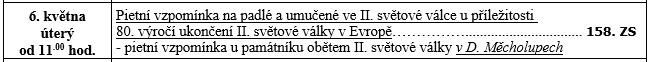 25. října 2024 v 14.00 - Pietní vzpomínka na padlé, u příležitosti 106. výročí ukončení I. světové války a vzniku samostatného Československa. Pietní vzpomínka u pamětní desky obětem II. světové války v H. Měcholupech za obchod. střediskem "Na Vartě"